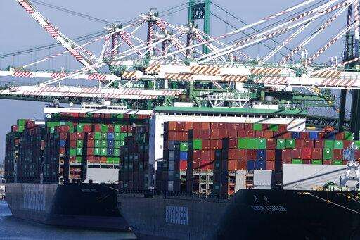 LOS ANGELES (AP) - A Los Angeles neighborhood just outside the nation's busiest port complex has become a perpetual traffic jam, with trucks hauling cargo containers backed up day and night as workers try to break through an unprecedented backlog of ships waiting to unload.