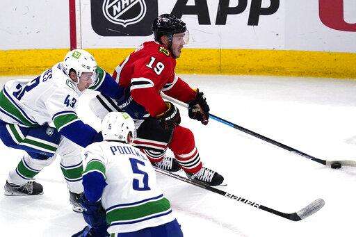 Alex DeBrincat scored a power-play goal for sputtering Chicago, which dropped to 0-4-1. Kevin Lankinen was sharp in stopping 21 shots, but the Blackhawks again failed to cash in offensively despite outshooting the Canucks 30-25.