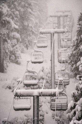 In this photo provided by Mammoth Mountain Ski Area, snow falls on Mammoth Mountain, Monday, Oct. 25, 2021, in Mammoth Lakes, Calif. (Christian Pondella/Mammoth Mountain Ski Area via AP) The Associated Press