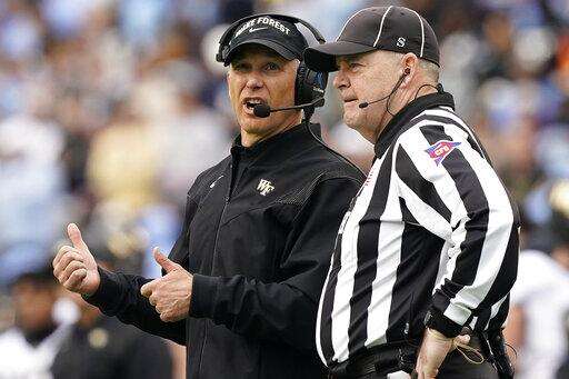 The loss doesn't impact the Demon Deacons' pursuit of their first ACC title since 2006 since it was part of a home-and-home nonconference series announced in 2015 with the schools not meeting as often amid the expanded ACC's scheduling model. But the goal Clawson mentioned after last week's rout of Duke - being in the playoff discussion - is likely gone.