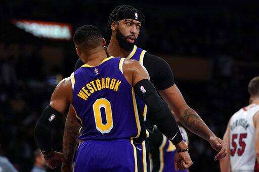 Russell Westbrook had 25 points, 14 assists and 12 rebounds for the Lakers, who made a season-high 18 3-pointers and improved to 2-2 while LeBron James is sidelined by a strained abdominal muscle.