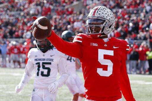 COLUMBUS, Ohio (AP) - C.J. Stroud lit up No. 7 Michigan State early and gave his coach the rare luxury of being able to let his mind wander to next week's showdown with Michigan.