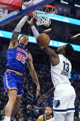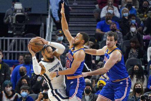 The Warriors led comfortably most of the second half before the Grizzlies made a late push and tied it at 102-all on De'Anthony Melton's layup. But Juan Tosco-Anderson scored on a reverse, Payton made his fourth 3 and Curry scurried past three defenders in the key for a layup to help Golden State pull away.