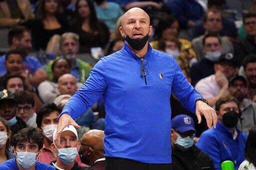 Dallas Mavericks head coach Jason Kidd watches from the sidelines during the first half of an NBA basketball game against the Milwaukee Bucks in Dallas, Thursday, Dec. 23, 2021. (AP Photo/LM Otero) The Associated Press