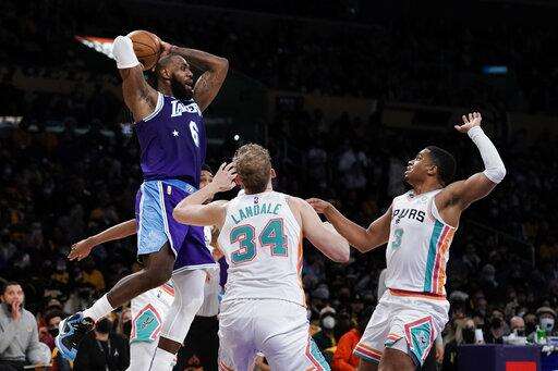Spurs: They also played in the Lakers' final game at the Forum on May 23, 1999. Tim Duncan scored 33 points then as San Antonio completed a four-game sweep of Los Angeles in the second round of the postseason. Popovich was in his third year as coach. ... Keldon Johnson scored 16 points.