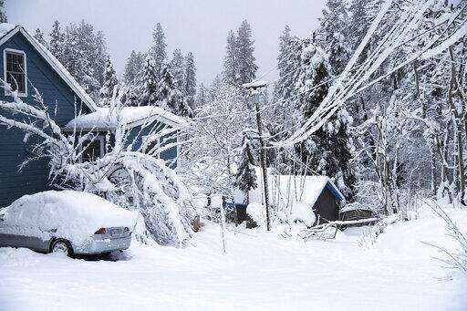 SEATTLE (AP) - The Pacific Northwest and Sierra Nevada grappled Tuesday with another day of snow, ice and unseasonable cold that has disrupted traffic, caused closures and forced people to find refuge in emergency warming shelters.