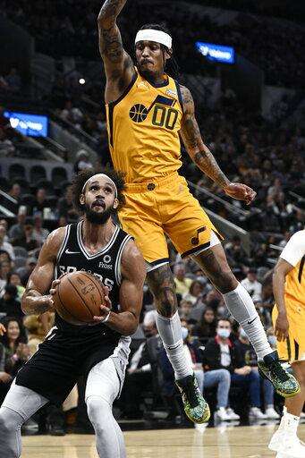 The Jazz were without injured guard Donovan Mitchell. Spurs point guard Dejounte Murray missed his second straight game while in the league's health and safety protocols.