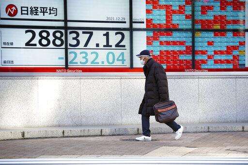 TOKYO (AP) - Asian shares mostly slipped Wednesday, as worries lingered about the coronavirus omicron variant's potential damage to the regional economy following mixed cues from Wall Street.