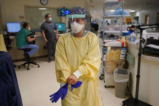 Several patients in the hospital's COVID-19 ICU unit were on ventilators, a breathing tube down their throats. In one room, staff members made preparations for what they feared would be the final family visit for a dying patient.