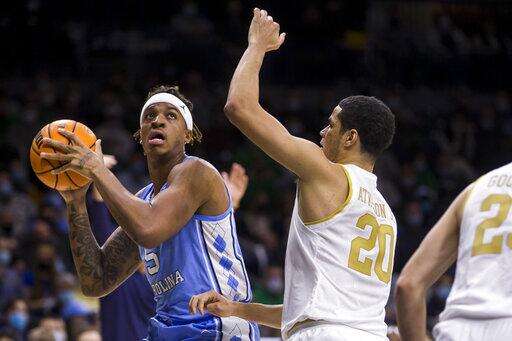 UNC was without 6-foot-11 starter Dawson Garcia, a double-figure scorer and second-leading rebounder for the Tar Heels. He suffered a concussion early in Sunday's win over Boston College. Reserves Kerwin Walton and Justin McKoy were also out because of COVID protocols.