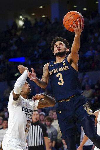 Georgia Tech led 35-29 at halftime and 41-35 after Jordan Usher buried a jumper with 16:43 remaining in the game. Paul Atkinson Jr. and Hubb had back-to-back layups, Wesley sank a pull-up jumper, Dane Goodwin dunked and Hubb hit a 3-pointer to cap an 11-0 run that left the Fighting Irish leading 46-41 with 12:38 left to play.