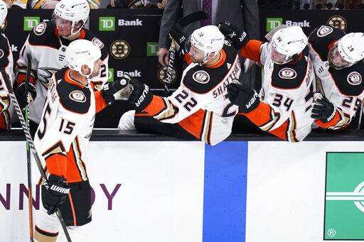 BOSTON (AP) - Troy Terry scored his team-leading 23rd goal, Ryan Getzlaf had a goal and set up another, and the Anaheim Ducks cooled off the Boston Bruins with a 5-3 victory Monday night.