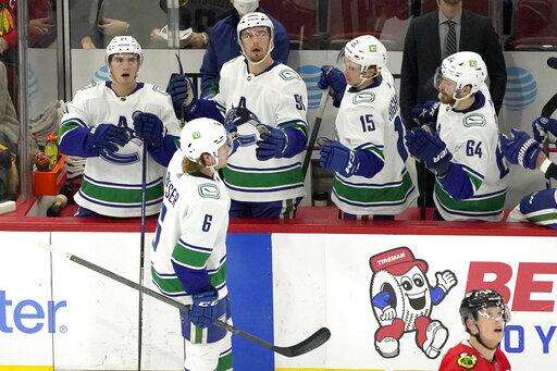 Alex Chiasson and Luke Schenn also scored for Vancouver, which had dropped four of five. The Canucks managed just 15 shots on goal in a 1-0 overtime loss at Calgary on Saturday night.