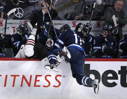 WINNIPEG, Manitoba (AP) - Alex DeBrincat scored his 28th goal midway through the third period and the Chicago Blackhawks defeated the Winnipeg Jets 3-1 on Monday night.
