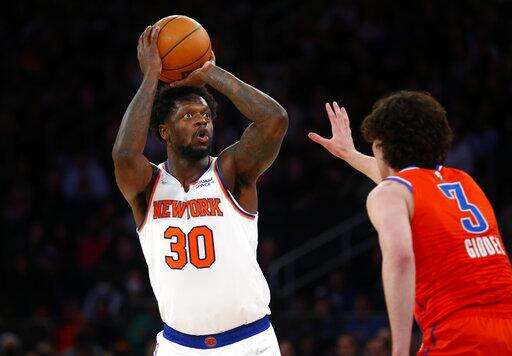 The Knicks led by as many as 11 points in the third quarter before Oklahoma City rallied to take a brief 89-97 lead following a 3-pointer by Bazley with 2:45 left.