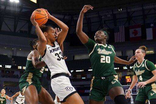 Neither team held more than three-point lead in the second half and it was tied at 40 with 5:23 to play. But the Knights scored the next nine points and ended the game on a 13-5 run. Battles and Destiny Thomas each had four points during the stretch. The Knights held South Florida to 17% shooting (2 of 12), forced seven turnovers and outscored the Bulls 16-6 in the fourth quarter.