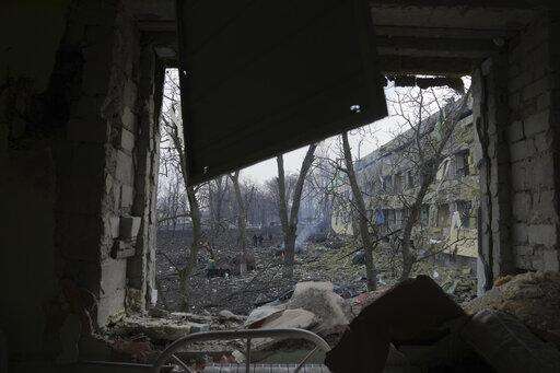FILE - A view onto the yard of a maternity hospital damaged in a shelling attack in Mariupol, Ukraine, Wednesday, March 9, 2022. Associated Press journalists, who have been reporting from inside blockaded Mariupol since early in the war, documented this attack on the hospital and saw the victims and damage firsthand. They shot video and photos of several bloodstained, pregnant mothers fleeing the blown-out maternity ward, medics shouting, children crying. (AP Photo/Evgeniy Maloletka, File) The Associated Press