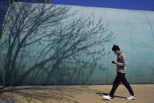 A resident wearing a mask walks past shadows of a tree in a park on Thursday, March 31, 2022, in Beijing. China's case numbers in its latest infection surge are low compared with other major countries. But the ruling Communist Party is enforcing a "zero tolerance" strategy aimed at isolating every infected person. (AP Photo/Ng Han Guan) The Associated Press