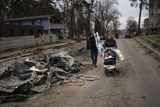 BUCHA, Ukraine (AP) - Police and other investigators walked the silent streets of ruined towns around Ukraine's capital, documenting widespread killings of unarmed civilians and other alleged war crimes by Russian forces that could draw tougher Western sanctions as soon as Wednesday.