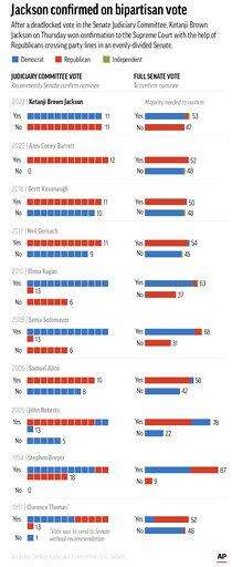 Despite Republican criticism of her record, Jackson eventually won three GOP votes. The final tally was far from the overwhelming bipartisan confirmations for Breyer and other justices in decades past, but it was still a significant accomplishment for Biden in the 50-50 split Senate after GOP senators aggressively worked to paint Jackson as too liberal and soft on crime.