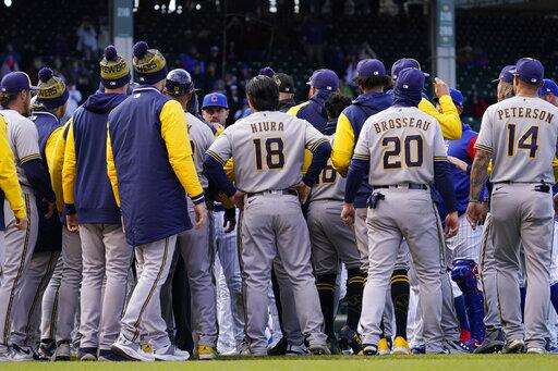 5 HBPs, benches clear as Cubs top Brewers 9-0; Suzuki 3 RBIs