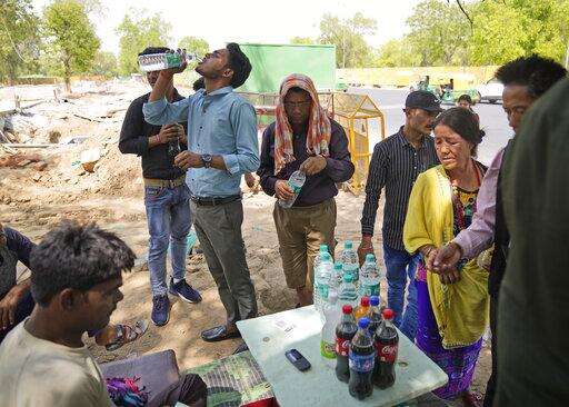 Tourists and commuters buy drinking water on a hot day in New Delhi, India, Monday, April 11, 2022. An unusually early heat wave has brought more triple-digit temperatures to a large swath of India's northwest, raising concerns that such extreme weather conditions could become the new normal. (AP Photo/Manish Swarup) The Associated Press