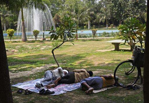 Workers sleep in a shade of a tree as a heat wave continues to lash the capital, in New Delhi, India, Monday, April 11, 2022. On Tuesday, the India Meteorological Department predicted maximum temperatures in New Delhi to touch 105.8 degrees Fahrenheit (41 degrees Celsius), nearly eight notches above the season's normal. (AP Photo/Manish Swarup) The Associated Press