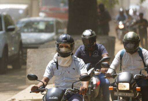 Commuters drive covering their faces to save themselves from a heat wave that lashes the capital, in New Delhi, India, Monday, April 11, 2022. On Tuesday, the India Meteorological Department predicted maximum temperatures in New Delhi to touch 105.8 degrees Fahrenheit (41 degrees Celsius), nearly eight notches above the season's normal. (AP Photo/Manish Swarup) The Associated Press