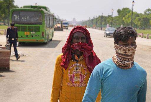 Workers cover their faces and head to protect from heat as they break for lunch in New Delhi, India, Monday, April 11, 2022. An unusually early heat wave has brought more triple-digit temperatures to a large swath of India's northwest, raising concerns that such extreme weather conditions could become the new normal. (AP Photo/Manish Swarup) The Associated Press