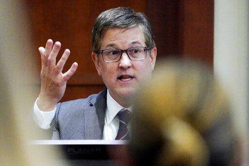 Douglas Bania, licensing and damages expert, testifies in the courtroom at the Fairfax County Circuit Court in Fairfax, Va., Monday May 2, 2022. Actor Johnny Depp sued his ex-wife Amber Heard for libel in Fairfax County Circuit Court after she wrote an op-ed piece in The Washington Post in 2018 referring to herself as a "public figure representing domestic abuse." (AP Photo/Steve Helber, Pool)