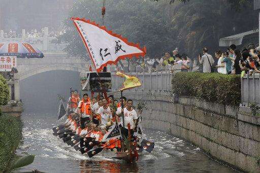 GUANGZHOU, China (AP) - The dragon boat tradition returned in parts of China on Friday for the first time since the outbreak of the pandemic in late 2019, as restrictions are lifted along with a major drop in COVID-19 cases.