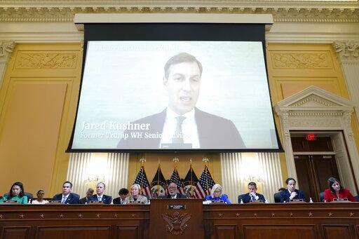 A video showing former White House Senior Advisor Jared Kushner speaking during an interview with the Jan. 6 Committee is shown at the House select committee investigating the Jan. 6 attack on the U.S. Capitol, hearing Thursday, June 9, 2022, on Capitol Hill in Washington. (AP Photo/Andrew Harnik)