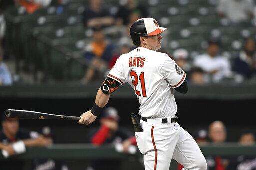 Hays completed the feat with a sixth-inning double in the midst of a steady shower and shortly before play was halted for good in Baltimore's 7-0 victory over the Washington Nationals on Wednesday night.