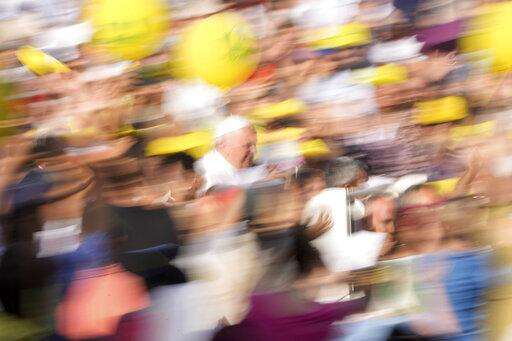 Pope Francis arrives in St. Peter's Square at the Vatican for the participants into the World Meeting of Families in Rome, Saturday, June 25, 2022. The World Meeting of Families was created by Pope John Paul II in 1994 and celebrated every three years since then in different cities. (AP Photo/Andrew Medichini)