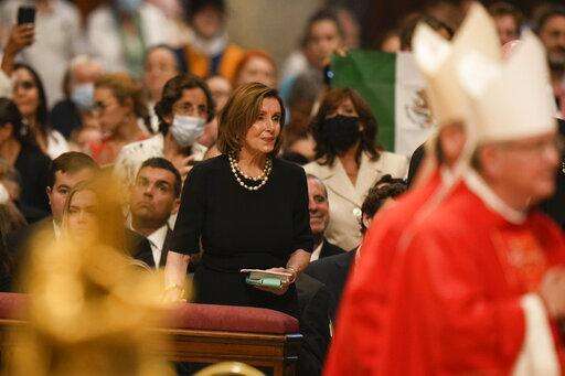 Pelosi attended the morning Mass marking the feasts of St. Peter and St. Paul, during which Francis bestowed the woolen pallium stole on newly consecrated archbishops. She was seated in a VIP diplomatic section of the basilica and received Communion along with the rest of the congregants, according to two people who witnessed the moment.