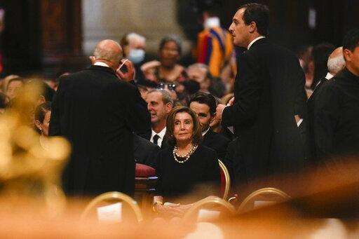 Pelosi met with Francis on Wednesday before the Mass and received a blessing, according to one of the Mass attendees. A photo released by the Vatican showed Pelosi and her husband, Paul Pelosi, greeting Francis off to the side of the basilica.