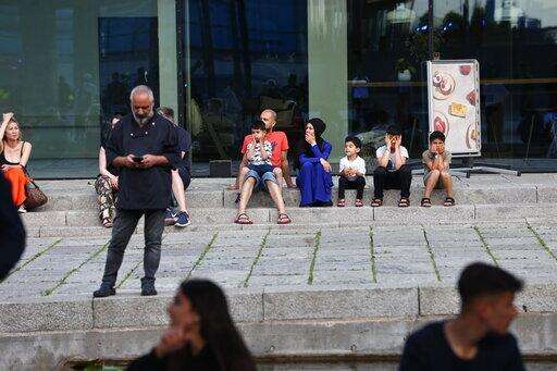 People evacuated from the Fields shopping center react, in Orestad, Copenhagen, Denmark, Sunday, July 3, 2022, after reports of shots fired. Danish police say several people have been shot at a Copenhagen shopping mall. Copenhagen police said that one person has been arrested in connection with the shooting at the Field's shopping mall on Sunday. Police tweeted that 'several people have been hit' but gave no other details. (Olafur Steinar Gestsson /Ritzau Scanpix via AP)