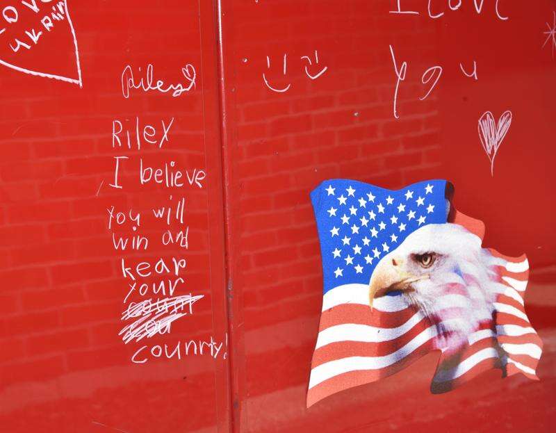 John Starks/jstarks@dailyherald.comAddison Fire Protection District is donating an ambulance to the war efforts in Ukraine. Children have been writing messages of hope on the vehicle and there will be more opportunities for the public to write on it.