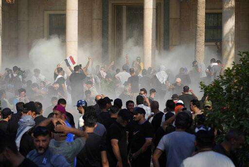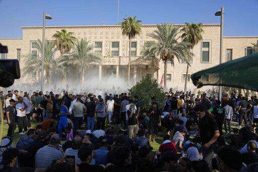 Protesters loyal to cleric Muqtada al-Sadr, who resigned Monday, pulled down the cement barriers outside the government palace with ropes and breached the palace gates. Many rushed into the lavish salons and marbled halls of the palace, a key meeting place for Iraqi heads of state and foreign dignitaries.