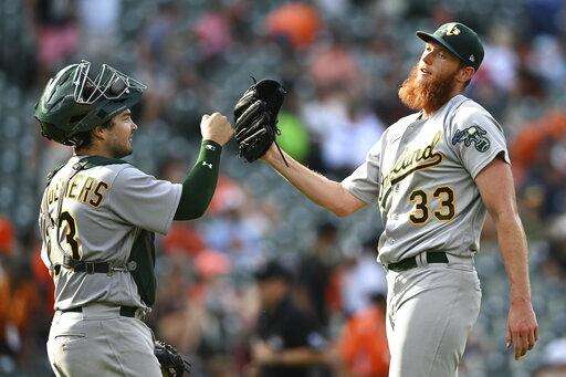 BALTIMORE (AP) - Seth Brown hit a pair of solo homers, rookie Adrián MartÃnez threw six innings of three-hit ball and the Oakland Athletics stalled the Baltimore Orioles playoff surge with a 5-0 victory Sunday.