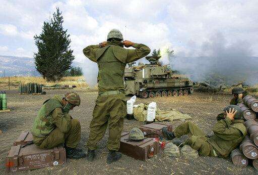 FILE - Israeli soldiers cover their ears as an artillery unit fires shells towards southern Lebanon from a position near Kiryat Shmona in northern Israel, Saturday, July 22, 2006. (AP Photo/Oded Balilty, File) The Associated Press