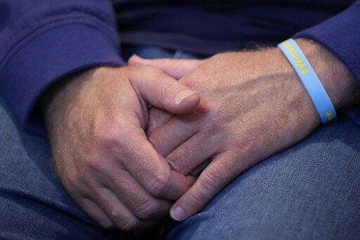 The hands of Vladimir Osechkin during an interview with The Associated Press in Paris, France, Tuesday, Sept. 20, 2022. French authorities are investigating death threats against Osechkin, a Russian prisoners' rights activist, who says he was the target of an assassination attempt last week at his home in France. (AP Photo/Francois Mori) The Associated Press