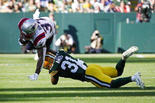 New England's Damien Harris and Rhamondre Stevenson led a 167-yard rushing attack that gained 5.1 yards per attempt to help the Patriots force overtime before the Packers survived 27-24.