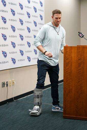 NASHVILLE, Tenn. (AP) - Ryan Tannehill walked out wearing sneakers Wednesday to talk to reporters with no hint of a limp.