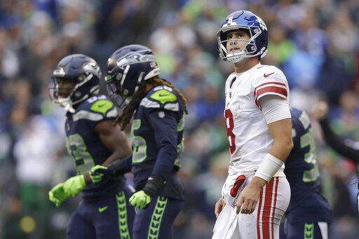 New York lost defensive lineman Nick Williams in the first quarter to a biceps injury and James was ruled out with a concussion after he hit the back of his head on the turf after his second fumble. Seattle played nearly the entire game without pass rusher Darrell Taylor due to a hip injury, and versatile safety Ryan Neal limped off in the fourth quarter with cramps in both hamstrings.