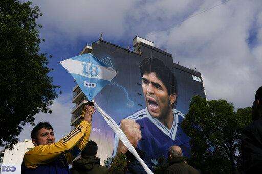 BUENOS AIRES, Argentina (AP) - In the middle of the concrete jungle that is Argentina's bustling capital, a huge mural has emerged of Diego Maradona wearing a national team jersey, his right hand in a fist and a defiant expression on his face.