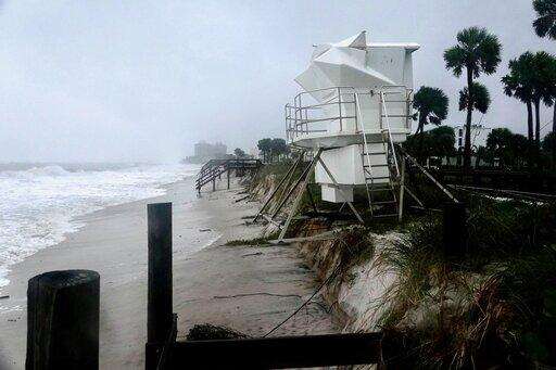 The storm had sent Florida homes toppling into the Atlantic Ocean earlier Thursday and threatened a row of high-rise condominiums in places where Hurricane Ian washed away the beach and destroyed seawalls only weeks ago.