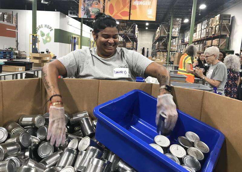 Danielle Barber, of Antioch recently began volunteering at the Northern Illinois Food Bank distribution center in Green Oaks. "It makes you feel good," she said.