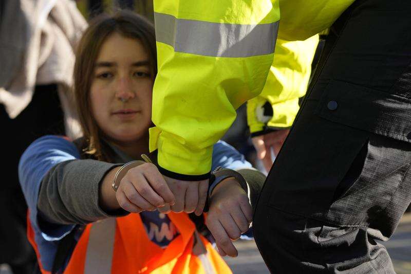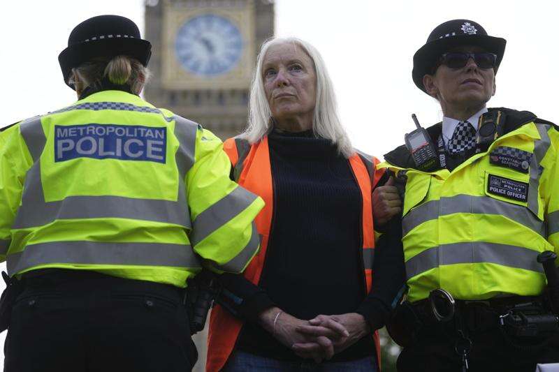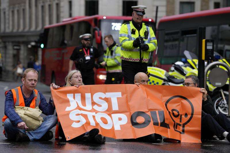 LONDON (AP) — For holding a sign outside a courthouse reminding jurors of their right to acquit defendants, a retiree faces up to two years in prison. For hanging a banner reading “Just Stop Oil” off a bridge, an engineer got a three-year prison sentence. Just for walking slowly down the street, scores of people have been arrested.