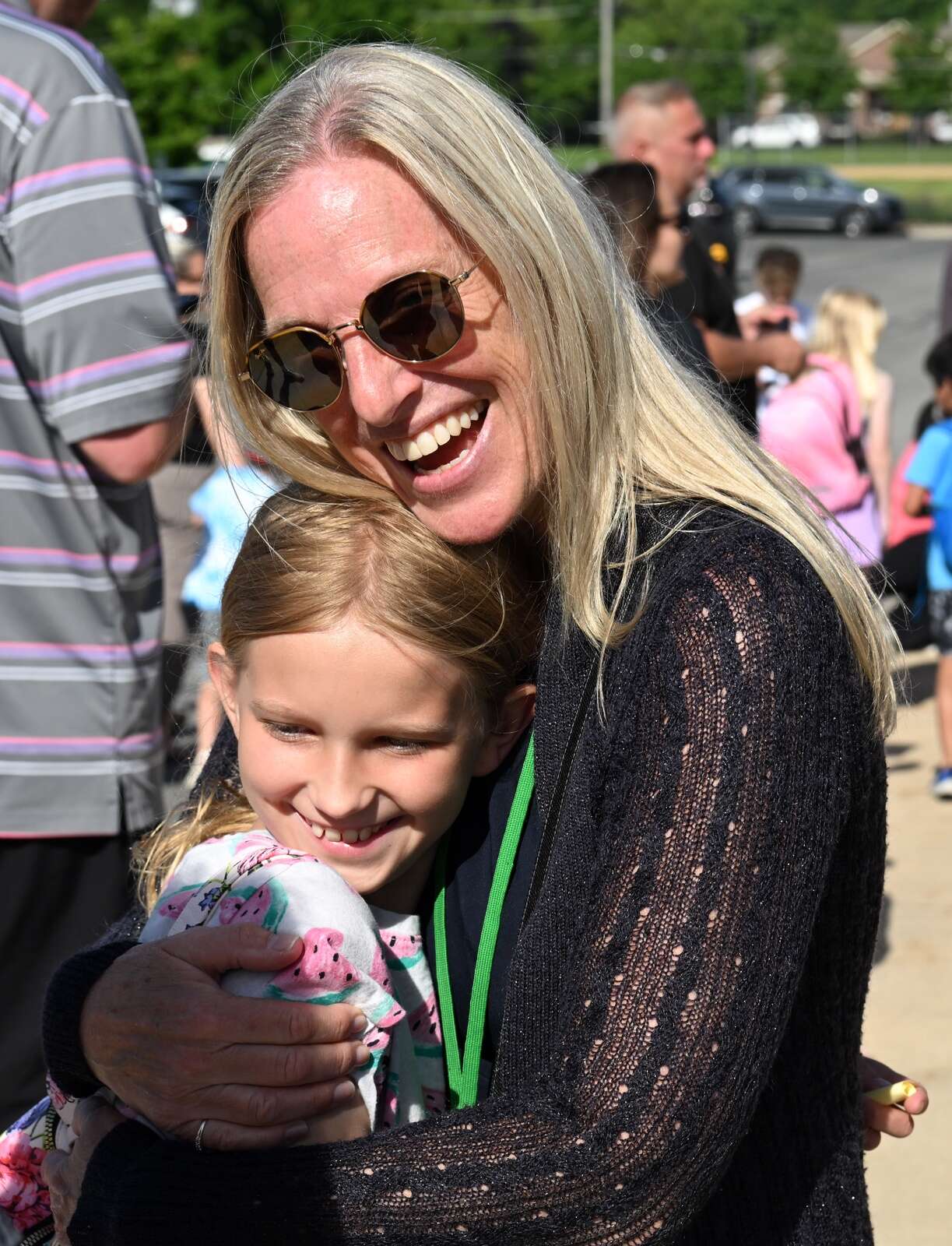 District 25 Superintendent Lori Bein, who is retiring next week after a decade at the helm of the district, greets Jenna Lambert, 9, on the first day of summer school, which is being held at Thomas Middle School, on Thursday, June 6, 2024 in Arlington Heights.